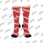 Direct-to-garment socks are a one-size-fits-all solution up to a men’s size 12. The base color is white with black on the toes and heel. The construction is 73% polyester, 18% nylon, 6% spandex, and 3% cotton. Add some foundational character with an all-over-print design; giving your customers a chance to style-up their footwear. This item may ship separately.